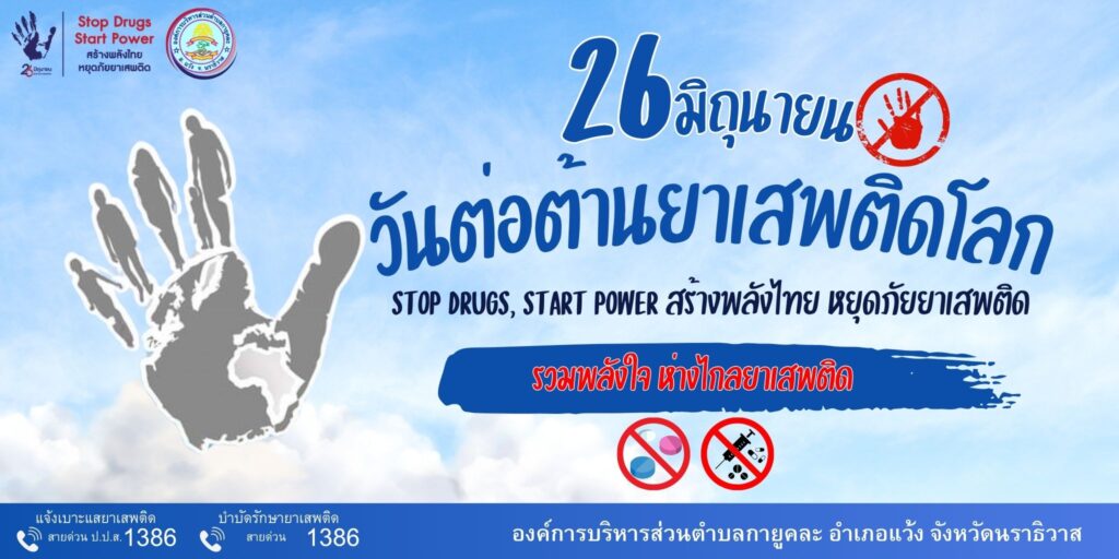 26 มิถุนายนของทุกปี เป็นวันต่อต้านยาเสพติดโลก “Stop Drugs, Start Power สร้างพลังไทย หยุดภัยยาเสพติด”