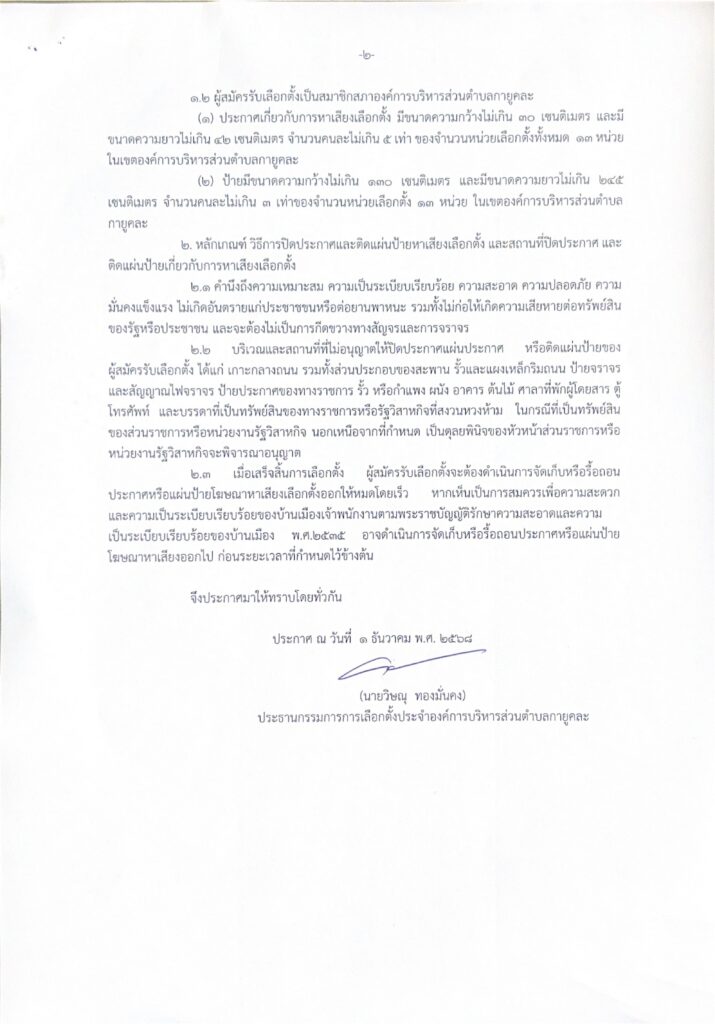 ประกาศจากคณะกรรมการการเลือกตั้งประจำองค์การบริหารส่วนตำบลกายูคละ