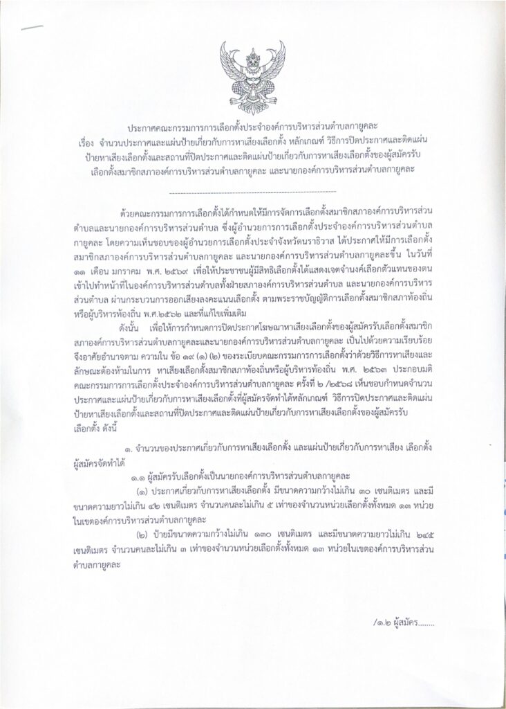 ประกาศจากคณะกรรมการการเลือกตั้งประจำองค์การบริหารส่วนตำบลกายูคละ