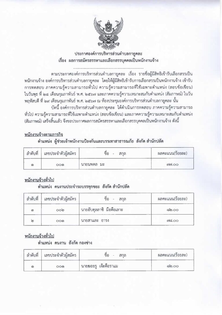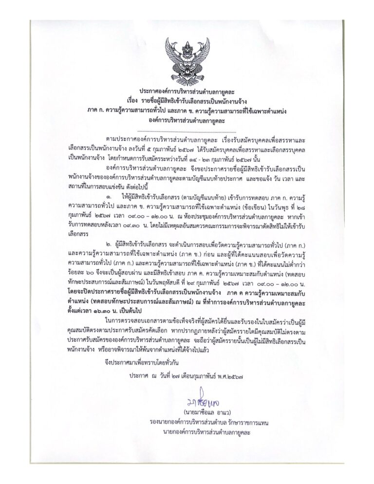 ประกาศองค์การบริหารส่วนตำบลกายูคละ เรื่อง รายชื่อผู้มีสิทธิเข้ารับเลือกสรรเป็นพนังงานจ้าง ภาค ก. ความรู้ความสามารถทั่วไป และภาค ข. ความรู้ความสามารถที่ใช้เฉพาะตำแหน่ง องค์การบริหารส่วนตำบลกายูคละ