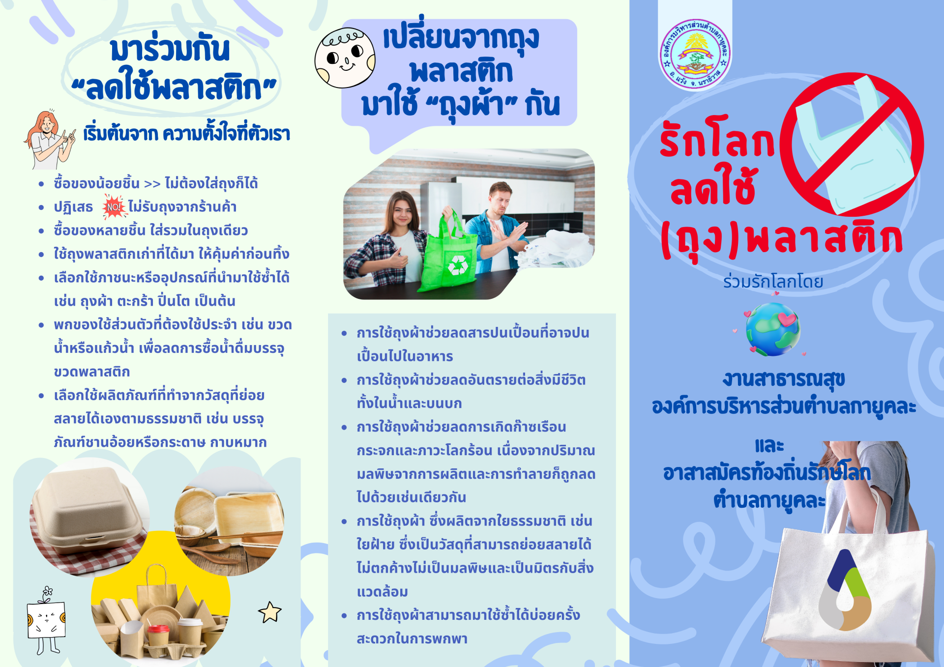 ร่วมรณรงค์ลดการใช้ถุงพลาสติกกับองค์การบริหารส่วนตำบลกายูคละกันนะคะ เพื่อเรา เพื่อโลกของเรา